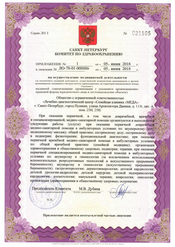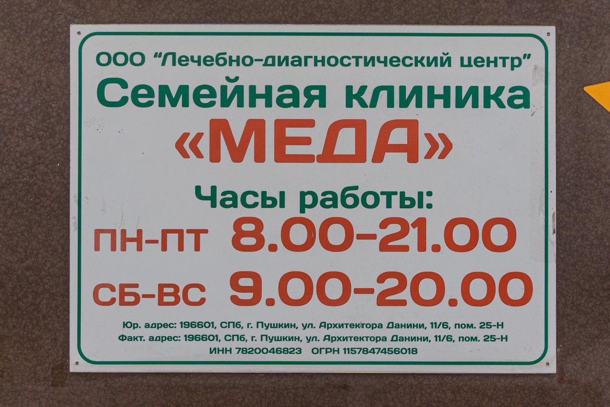 Семейная клиника МЕДА - это многопрофильное медицинское учреждение, предлагающее индивидуальный комплекс процедур для каждого клиента. Работа клиники организована с учетом комфортного пребывания посетителей. Оснащение центра помогает провести диагностику организма пациента для составления плана лечения и профилактики. В клинике работают отделения психиатрии, общей терапии, кардиологии, ревматологии, гастроэнтерологии, лечения инфекционных заболеваний, неврологии, эндокринологии, дерматологии, венерологии, урологии, андрологии, колопроктологии, гинекологии, акушерства, маммологии, онкологии, психотерапии, офтальмологии, оториноларингологии, педиатрии, неонатологии, логопедии, ортопедии. Наши работники имеют профильное медицинское образование и внимательно отнесутся к каждой вашей просьбе. Доверяя заботу о своем здоровье нам, вы можете не сомневаться в положительном результате. Также мы поможем с выбором подходящей диеты и коррекцией веса.